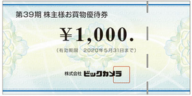 ▼優待利回り 3.76% ▼優待内容 1.ビックカメラ、ソフマップ、コジマ店頭で利用できる「株主様お買物優待券(1枚1,000円)」 ▼保有株数100株以上500株未満