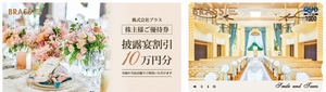 ▼優待利回り 477% ▼優待内容 ①ウェディングアイテム(300,000円分) ②レストラン割引カード(30%割引) ※ウェディングアイテム詳細や対象婚礼会場等はエスクリ公式サイトをご確認下さい ▼権利確定月 3月末、9月末 ▼最低投資金額目安 62,900円 |