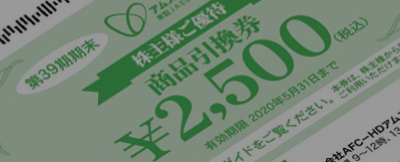 ▼優待利回り 3.7% ▼優待内容 自社運営店舗(アスビー、フェミニンカフェ、インビトなど)で利用できる株主優待券 ▼権利確定月 2月末、8月末 ▼最低投資金額目安 54,600円 |