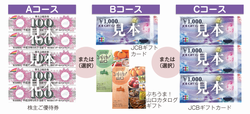 | 100株以上 | ▼Aコース 株主優待券…10枚(1,000円相当) ▼Bコース JCBギフトカード1枚(1,000円相当) ▼Cコース JCBギフトカード 1枚(1,000円分) |