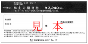 ▼優待利回り 1.6% ▼優待内容 「モッズ・ヘア」サロンで利用できる優待券3,300円分(税込)または「モッズ・ヘア」公式オンラインストアで利用できる優待券3,000円分(税込)いずれか ※保有株数100株以上 ※保有数・期間に応じて自社グループ製品等の加算有り ▼権利確定月 5月末 ▼最低投資金額目安 61,550円 |
