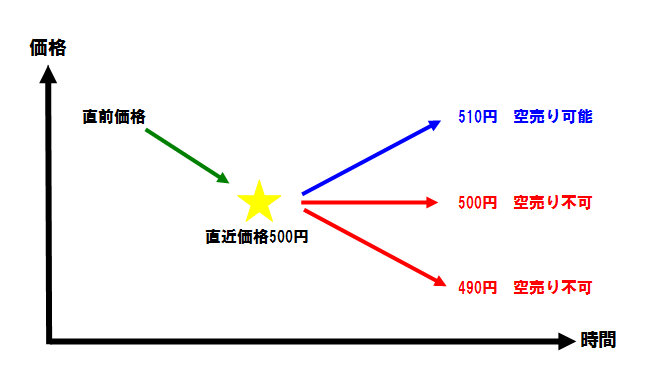 また、誤って空売り不可の値段で51単元以上の注文を出した場合、その注文は失効されるので規制に違反する心配はありません。