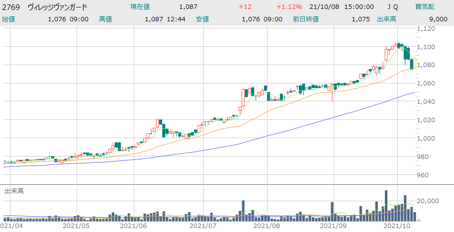 2021年10月8日時点で株価は1,087円ですので、100株取得の最低投資金額は108,700円となります。
