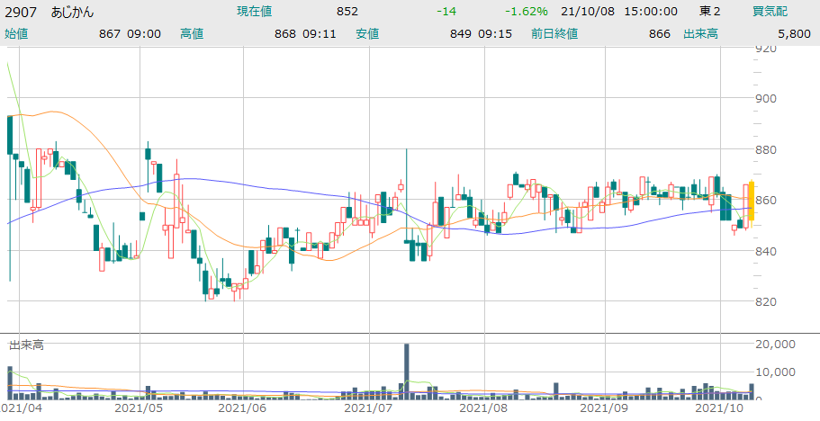あじかんは直近業績は下向いています。