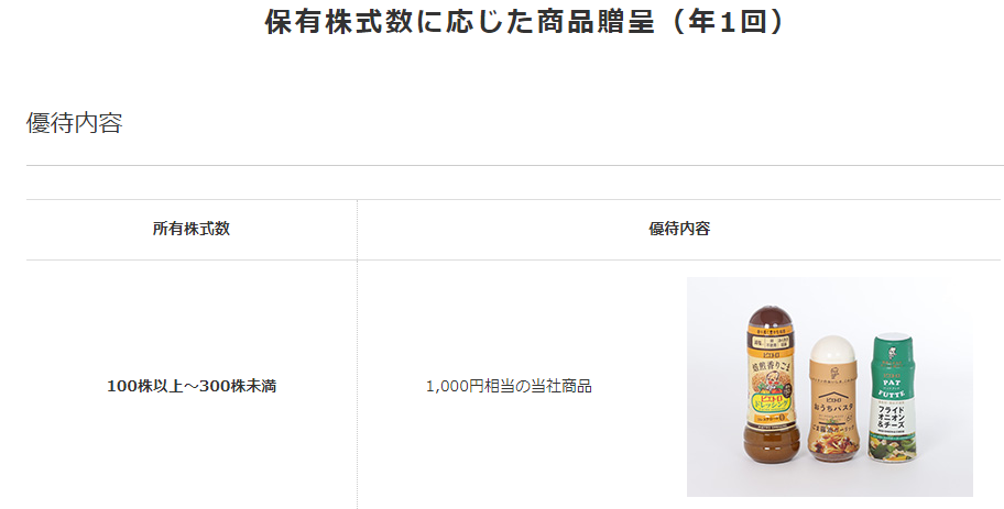 100株保有で、1000円相当の自社商品が贈呈されます。