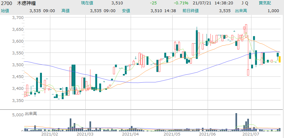 2021年7月21日時点で株価は3510円ですので、100株取得の最低投資金額は351,000円となります。