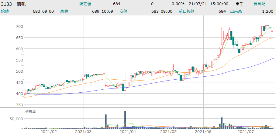 2021年7月21日時点で株価は684円ですので、100株取得の最低投資金額は68,400円となります。