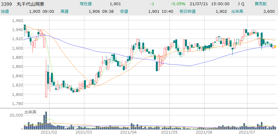 2021年7月21日時点で株価は1901円ですので、100株取得の最低投資金額は190,100円となります。
