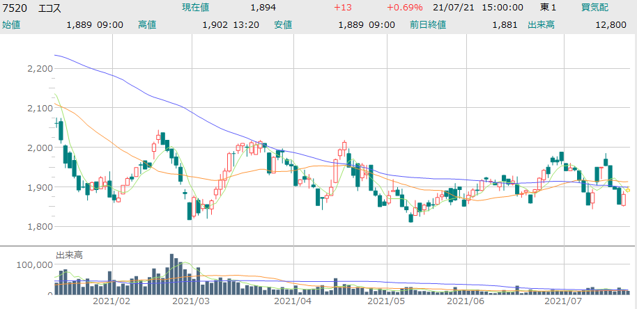 2021年7月21日時点で株価は1894円ですので、100株取得の最低投資金額は189,400円となります。
