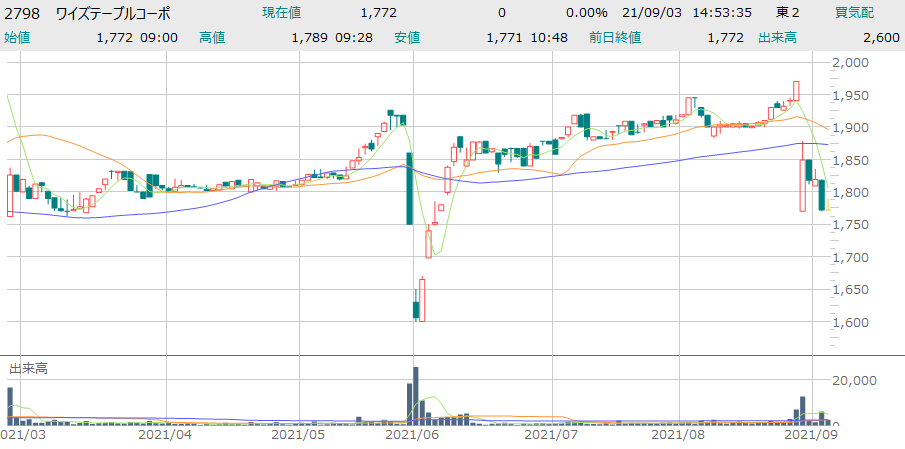 高級レストラン「XEX」を直営・FC展開、プレミアムおせちの販売でも知られるワイズテーブルコーポレーションですが、コロナ影響もあり沈んでいた印象大きいなかで、今期最終は黒字浮上で9期ぶりに最高益更新予想とだいぶ強気の見通しとなっていました。
