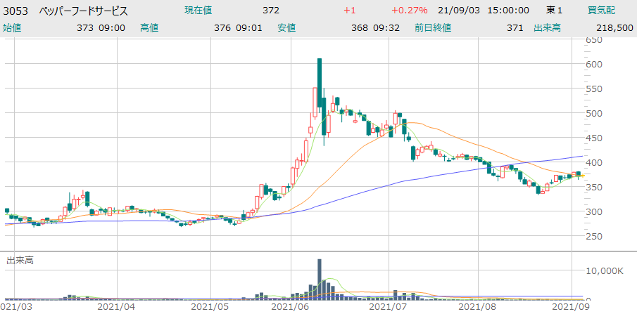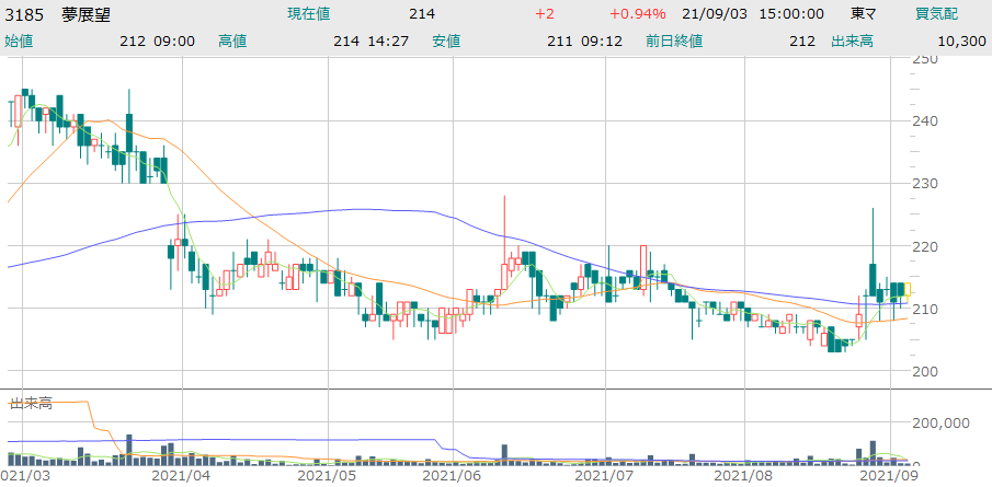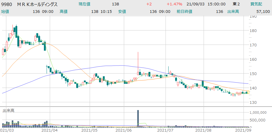 ワクチンなどいきわたり今後の行動規制が解けてくると復活見えてくると思うので、今後長い目で見れば沈んでいる今が買い時となる可能性は大いにある会社です。