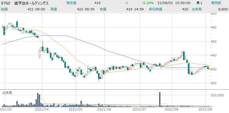 北海道を地盤に全国400以上の学習塾を運営する進学会ホールディングスですが、業績面はイマイチでここ最近は連続赤字での着地となっています。