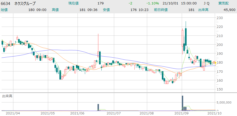 2021年10月1日時点で株価は179円ですので、100株取得の最低投資金額は17,900円となります。