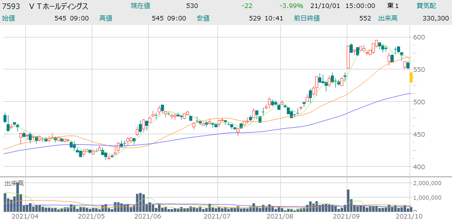 今年5月にKeePer技研の自己株式の買付に応募し、所有する株式の一部を売却して持分法適用関連会社からは外れるも、引き続き業務提携関係は継続しているVTホールディングスですが、