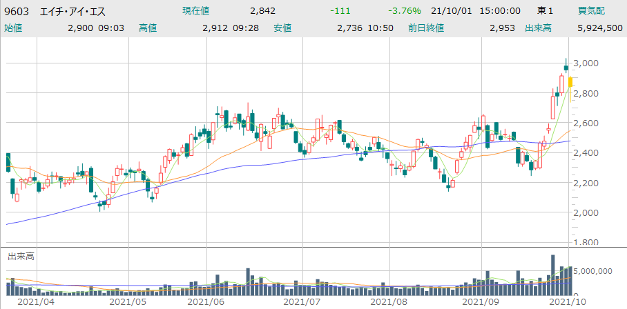 まず、1つ目の優待株は「エイチ・アイ・エス」です。