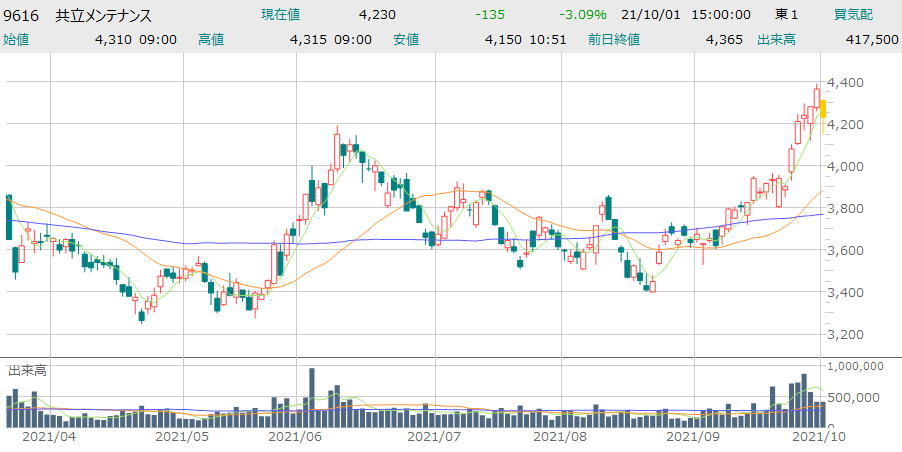 2021年10月1日時点で株価は4,230ですので、100株取得の最低投資金額は423,000円となります。