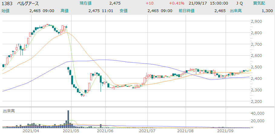 2021年9月17日時点の株価は2,475円ですので、100株取得の最低投資金額は247,500円となります。