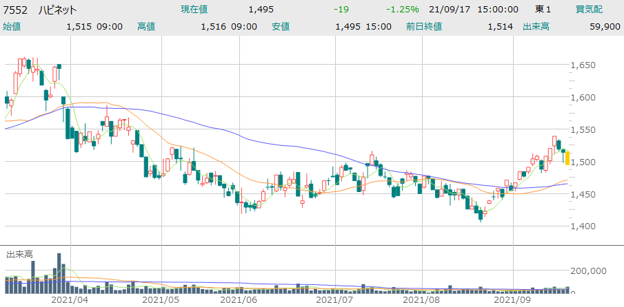 2021年9月17日時点の株価は1,495円ですので、100株取得の最低投資金額は149,500円となります。
