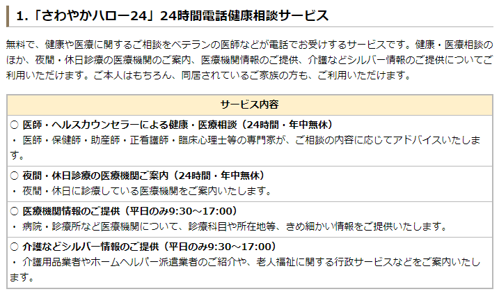 それが、24時間電話健康相談サービス「「さわやかハロー24」」です。
