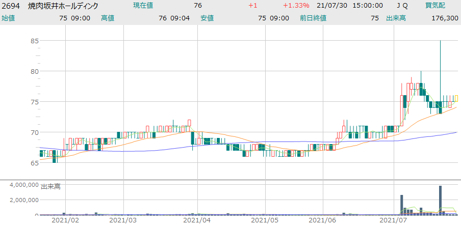 2つ目の優待株は、焼肉坂井ホールディングスです。