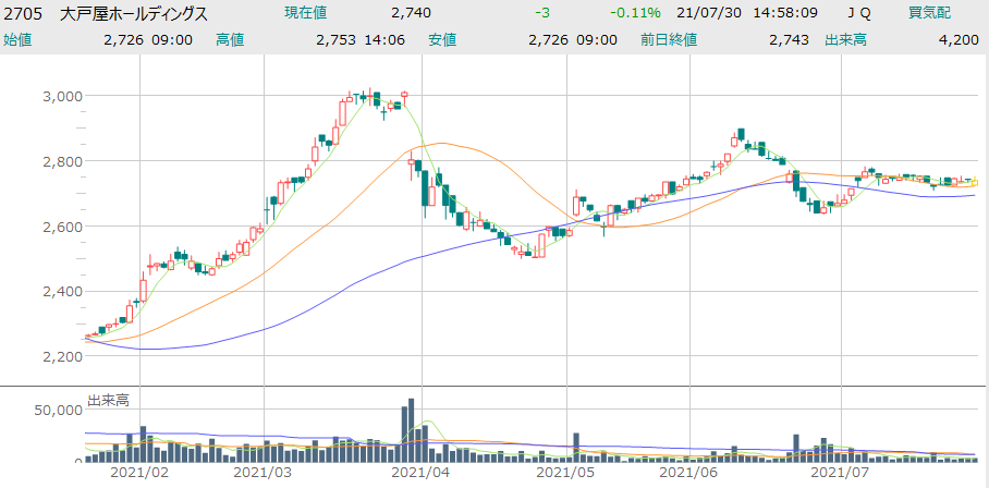 2021年7月30日時点で株価は2740円ですので、100株取得の最低投資金額は27万4000円となります。