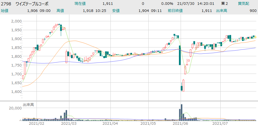 7つ目の優待株は、ワイズテーブルコーポレーションです。