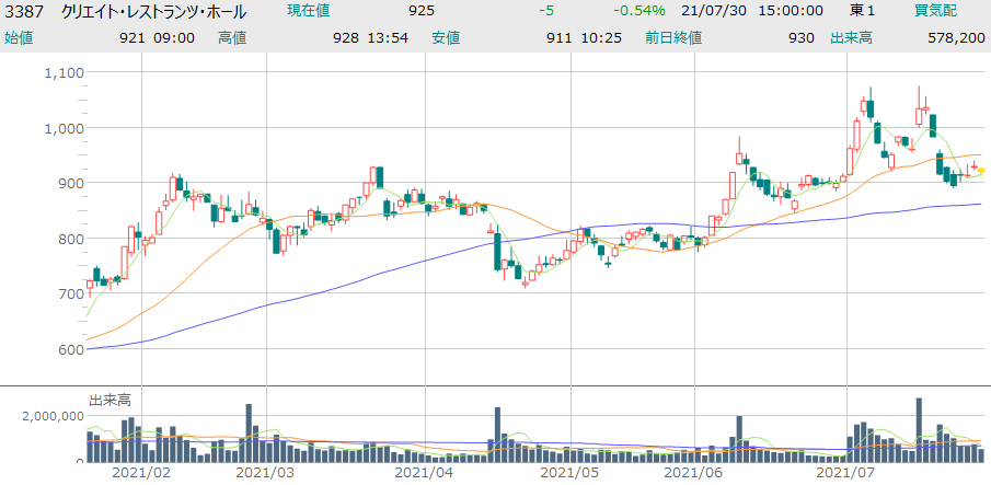 なお、クリエイトレストランツは、新型コロナウイルス感染症拡大に伴う緊急事態宣言や、まん延防止等重点措置に鑑みて、2021年7月14日付で、「株主様ご優待券(お食事券)の有効期限再延長に関するお知らせ」の開示を出しています。