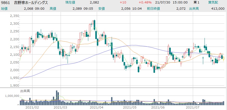 コロナの影響もあり昨年はだいぶ落ち込みましたが、柱の吉野家が持ち直して今の状況を考えれば頑張っている会社でしょう。
